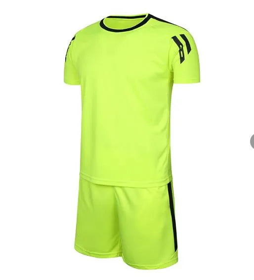 這套足球服是由速乾面料製成,讓您在運動時保持乾爽舒適。無論您是在足球場上奔跑還是在訓練場上努力訓練,這套足球服都能滿足您的需求。短袖設計讓您在運動時更加靈活自如,同時展現出時尚感。