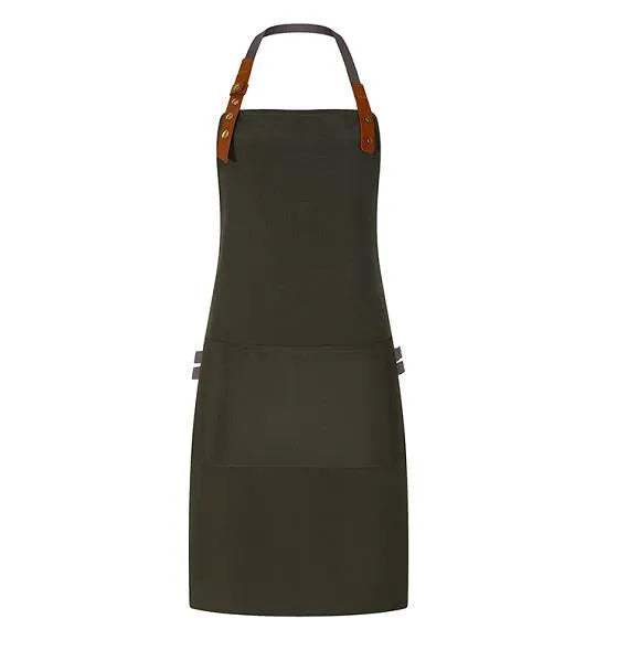 我們的訂製美髮工作圍裙以高品質的耐磨加厚帆布製成,保證您在工作中能夠得到最好的保護。這款圍裙採用經典的黑色設計,搭配精緻的皮革吊帶,既時尚又耐用。皮革吊帶可調節長度,適合不同身材的使用者,同時也增添了圍裙的整體質感。