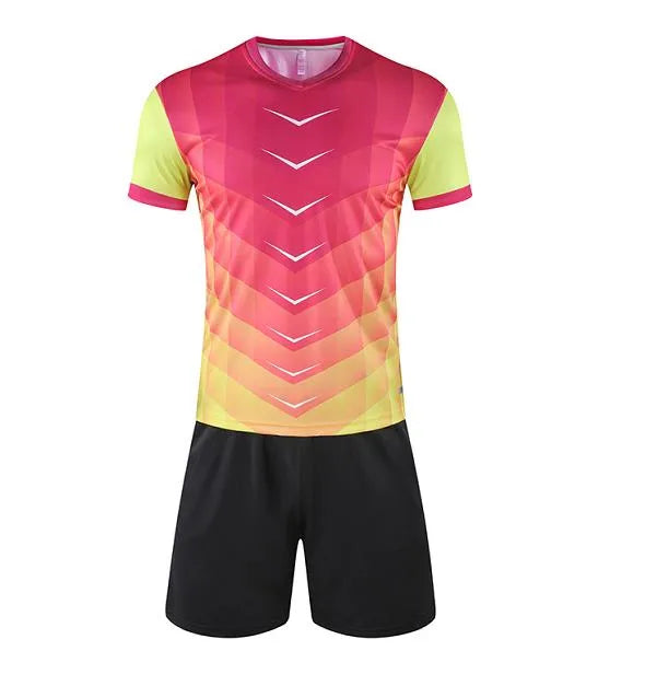 無論是在足球場上還是訓練場上,這款足球服都能展現出色的表現。印有球隊標誌或球員姓名的訂製服裝,更能凸顯團隊凝聚力和專業形象。整件熱升華漸變色V領足球服套裝中心,絕對是每支球隊不可或缺的選擇。